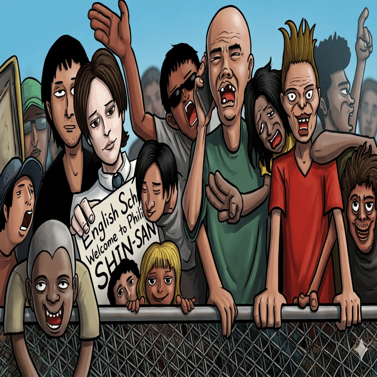 その隣には、眉毛のない厚い一重瞼、金髪の名前の分からない髪型で、黒に金ラメのラインが入ったジャージを腰の下までずり下げた、いわゆるサギングスタイルの若者がウロウロしていた。地方のドン・キホーテの駐車場に夜な夜な仲間と集まることが唯一の救いといった風貌の、岐阜県出身、通称ドンキ君。親の都合で一時的にフィリピンに住んでいるらしいが、どんな都合でフィリピンに一時的に住まなければならないことになるのか、僕には想像もつかない。