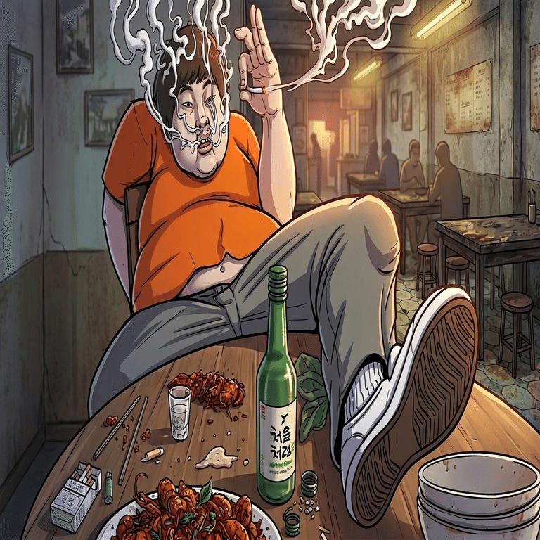 店員がタバコを消せ、足を下ろせと至極真っ当な注意をしに来たが、デブは鼓膜を震わせるハイトーンボイスで毒づき、タバコを地面に打ち捨てた。もちろん、通じるはずのない韓国語で、だ。