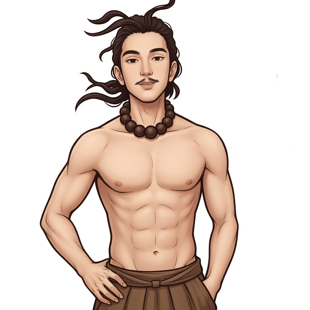 基本は上半身裸。髪型は重力に抗う独創的なフォルム。そして何より目を引くのは、首に装着された巨大な数珠のような物体だった。